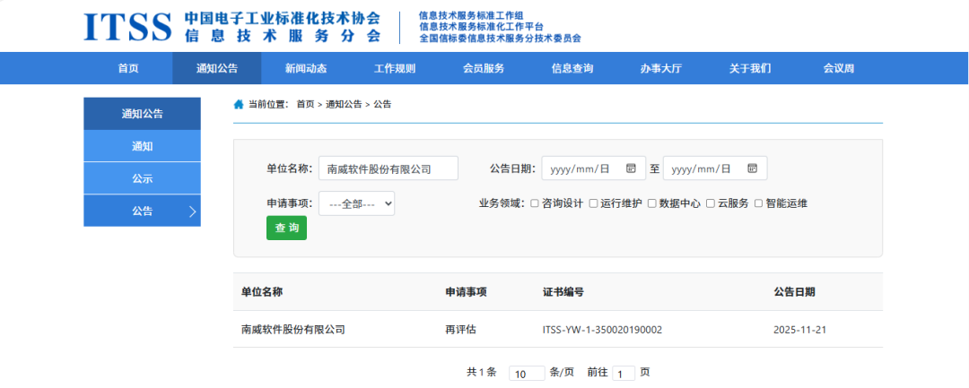 ITSS运维服务能力成熟度一级认证不仅是企业服务标准化、精细化运营的直接体现,更是参与国家级重大项目、高端市场竞争的核心资质保障。作为行业内资质最高最全的企业之一,南威软件集团已构建起涵盖ITSS运维服务能力成熟度一级、CCRC信息安全服务一级、软件服务商交付能力一级、CPMM软件项目管理能力一级、IT数智化人工智能服务能力评估一级、大模型服务能力评估一级的“顶级认证矩阵”,形成从软件研发到运维服务的全链条能力保障。