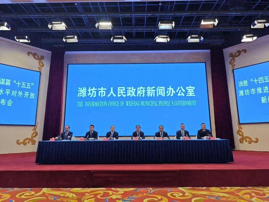10月10日,潍坊市政府新闻办召开“决胜‘十四五’谋篇‘十五五’”潍坊市推进高水平对外开放新闻发布会,系统宣传“十四五”以来潍坊市推进高水平对外开放工作成效,展望“十五五”发展新方向、新目标。潍坊市商务局、潍坊市委外办、潍坊市贸促会、潍坊海关、潍坊国家农综区推进办、潍坊综合保税区等6家部门、单位负责人分别介绍有关情况并回答记者提问。