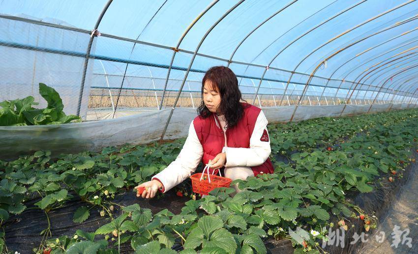 2024年,邹春香再添一座同等规模的草莓大棚,种植规模虽仅扩大一倍,草莓的产量却实现了近1.5倍的增长。走进她家的草莓棚,一垄垄翠绿的苗株上,白色的小花点缀其间,色泽艳丽的草莓垂满枝条,清甜的果香扑面而来。