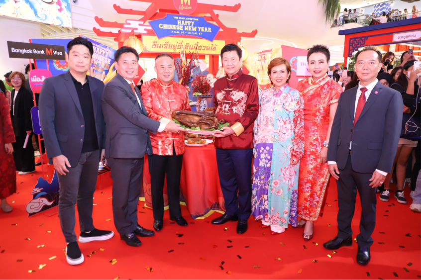 林剑冰(左一)与泰国中华总商会林楚钦主席(右四)参加在泰国举办的中国新年活动。
